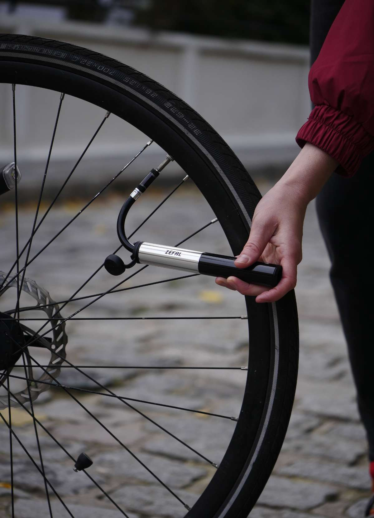 Air Profil FC01 hand pump - Zéfal Maximum pressure: 8 bar / 116 psiLength: 180 mmWeight: 105 gConstruction: all aluminum (barrel, stem, handle)Connection: reversible Z-Turn system, compatible with Presta and Schrader valvesClosure: Lock Magnet for quick and secure connectionFlexible connector: allows remote inflation, protecting the valveMud protection: prevents clogging and keeps the connection cleanAttachment: universal clip included for mounting on the frame