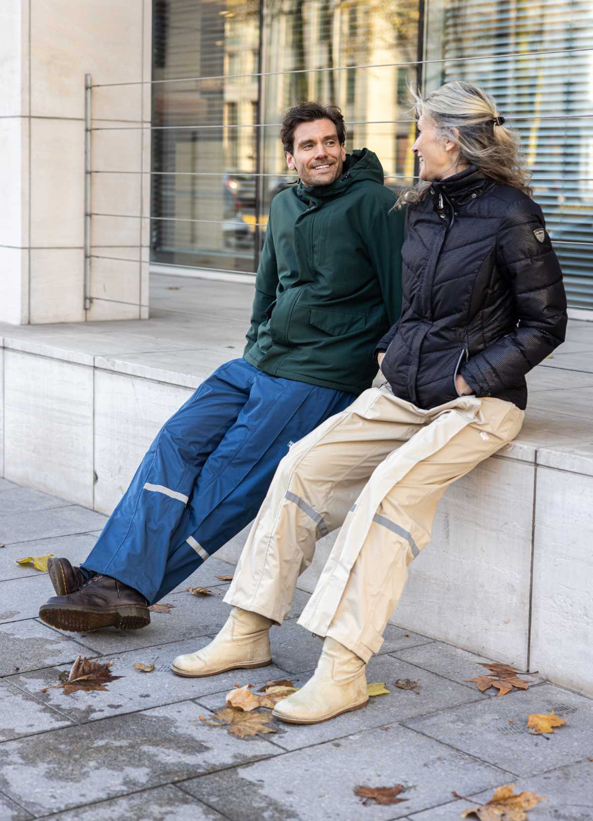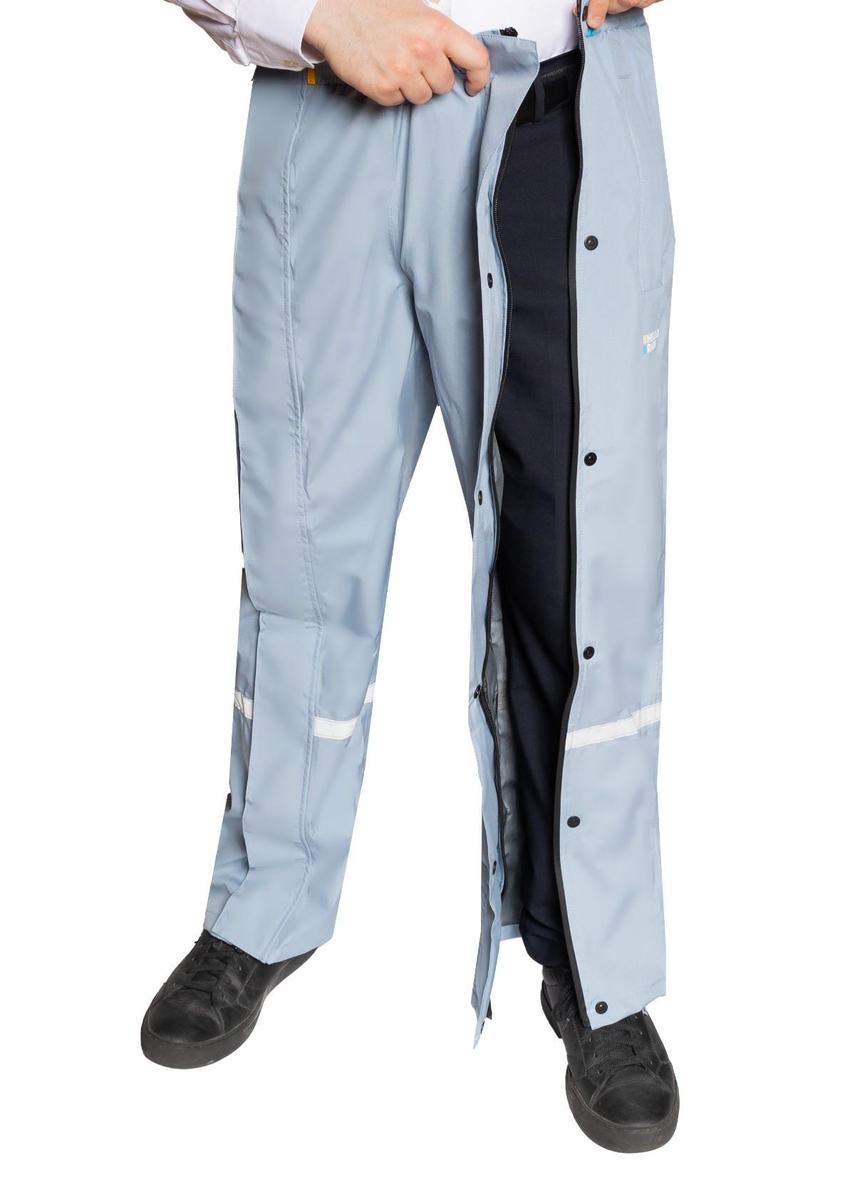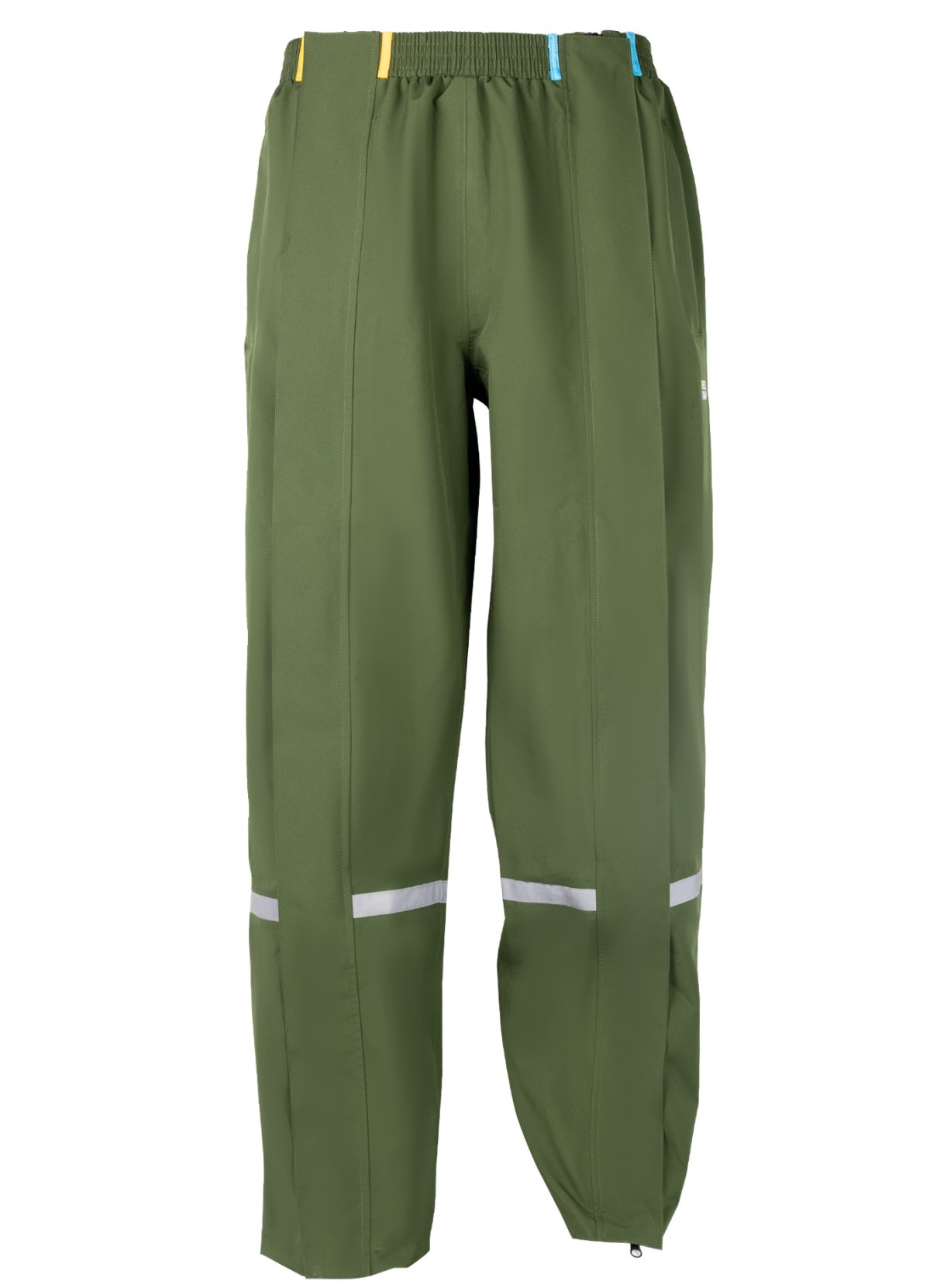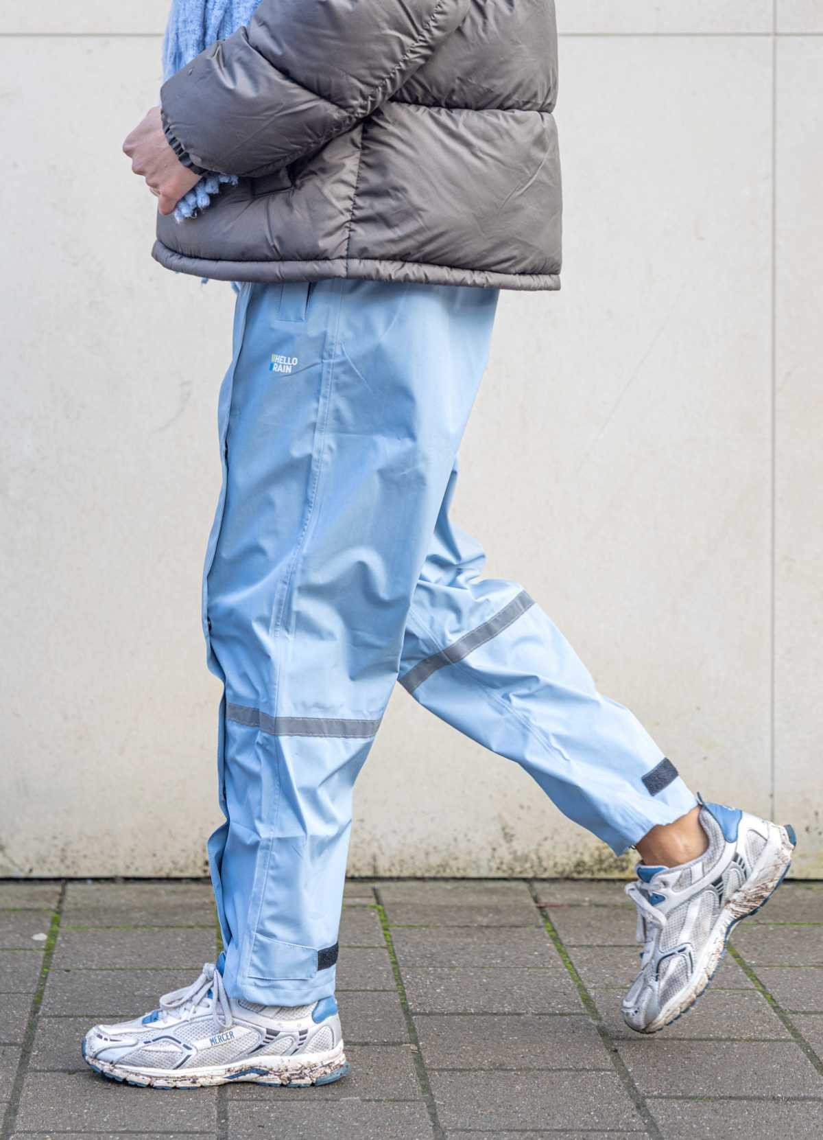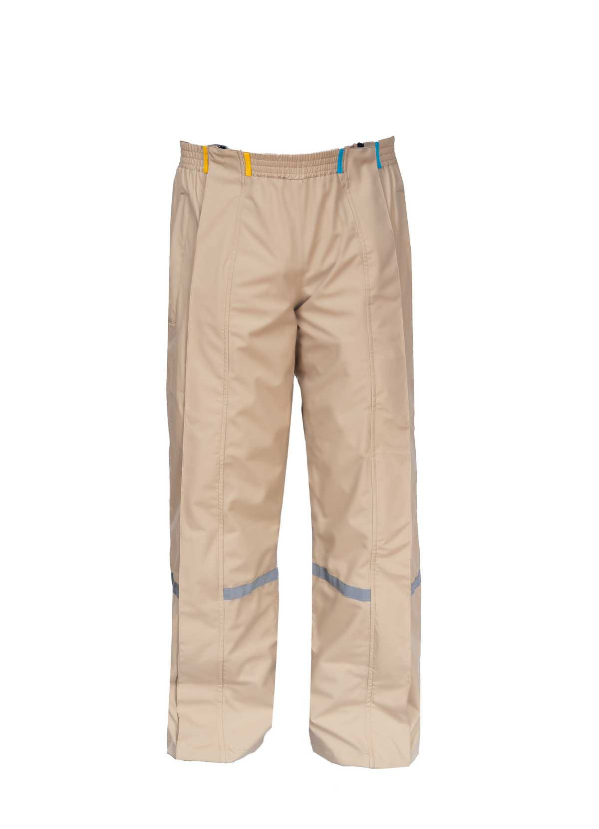 Details: Waterproof: 3 premium layers, 10,000 mm water column Windproof and breathable: 5,000 g/m²/li>LightweightUnique waterproof two-way full-length zipper with magnetic flap overlayElastic waistband for comfortReflective details on both legs for added safety. Waterproof zipper openings on both sides for access to your pockets. Velcro closure at the bottom of the legs.Water column: 10,000 mm (3 layers) Breathability: 5,000 g/m² (3 layers), waterproof seams PFAS-free, C0 certifiedComposition: Polyester./strong>