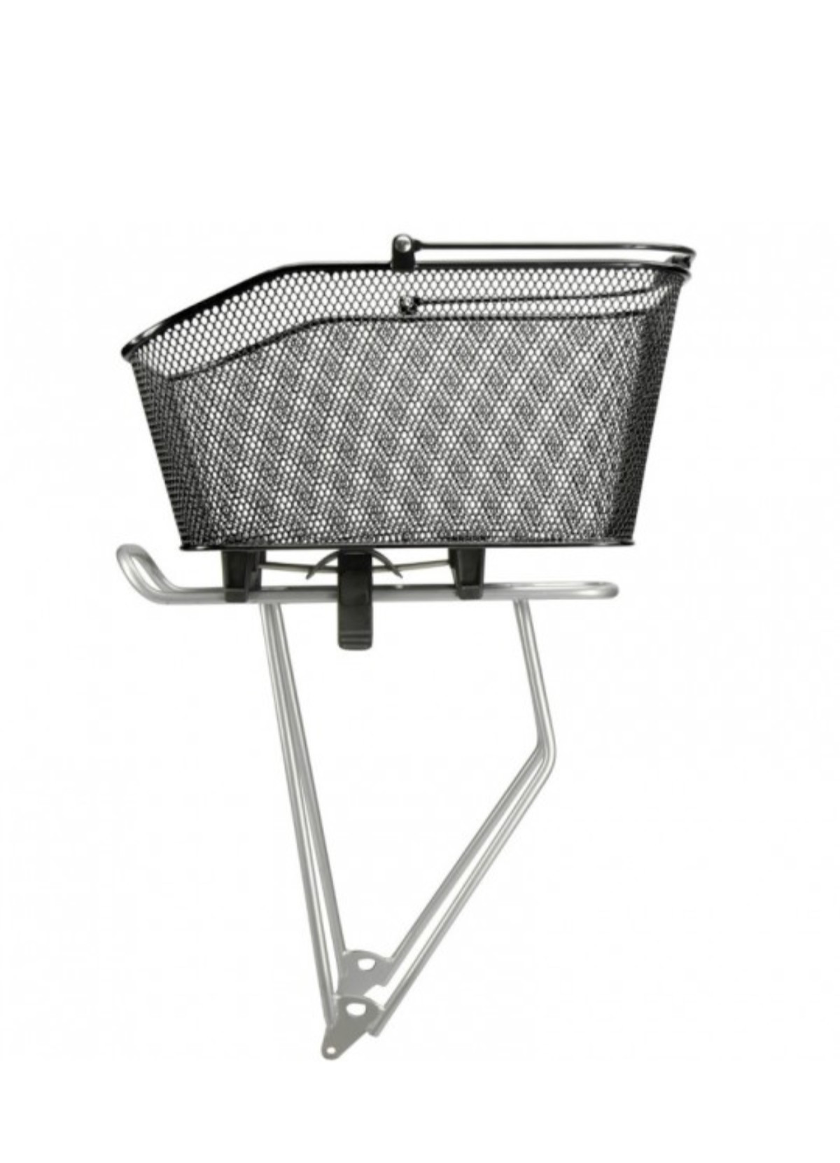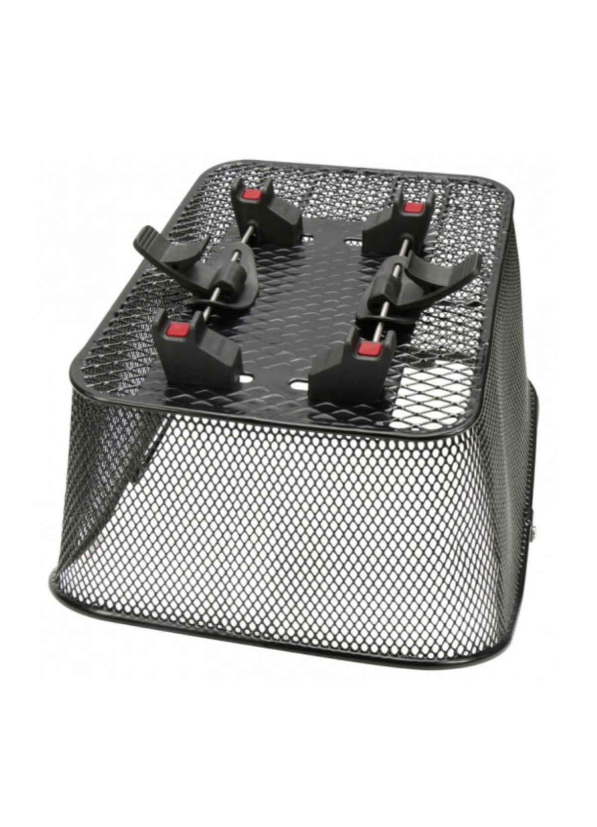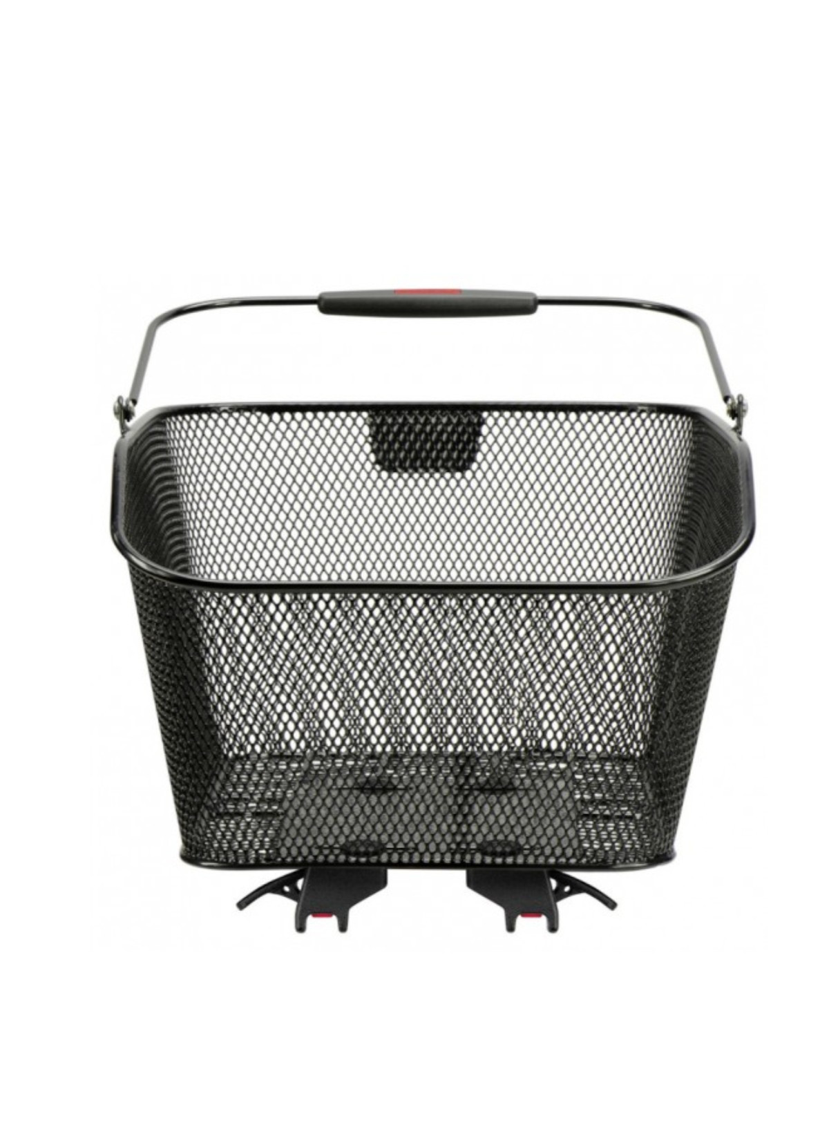 City bike basket - Klickfix Type: rear basket (mounts on luggage rack) Position on bike: luggage rack Handle: handleAttachment: removable with quick clip attachment/release on luggage rackAttachment included: yes (supplied with basket)Compatibility: designed for a wide variety of luggage racks with a diameter of 10–16 mm (universal attachment)Dimensions (width × length × height): 31 × 41 × 21 cmVolume: 20 LWeight: 1,600 gMaximum load: 10 kg max. Color: blackEasy assembly: align the basket so that it is centered on the rack, push the inner supports as close as possible to the rack rails. Lower the levers.