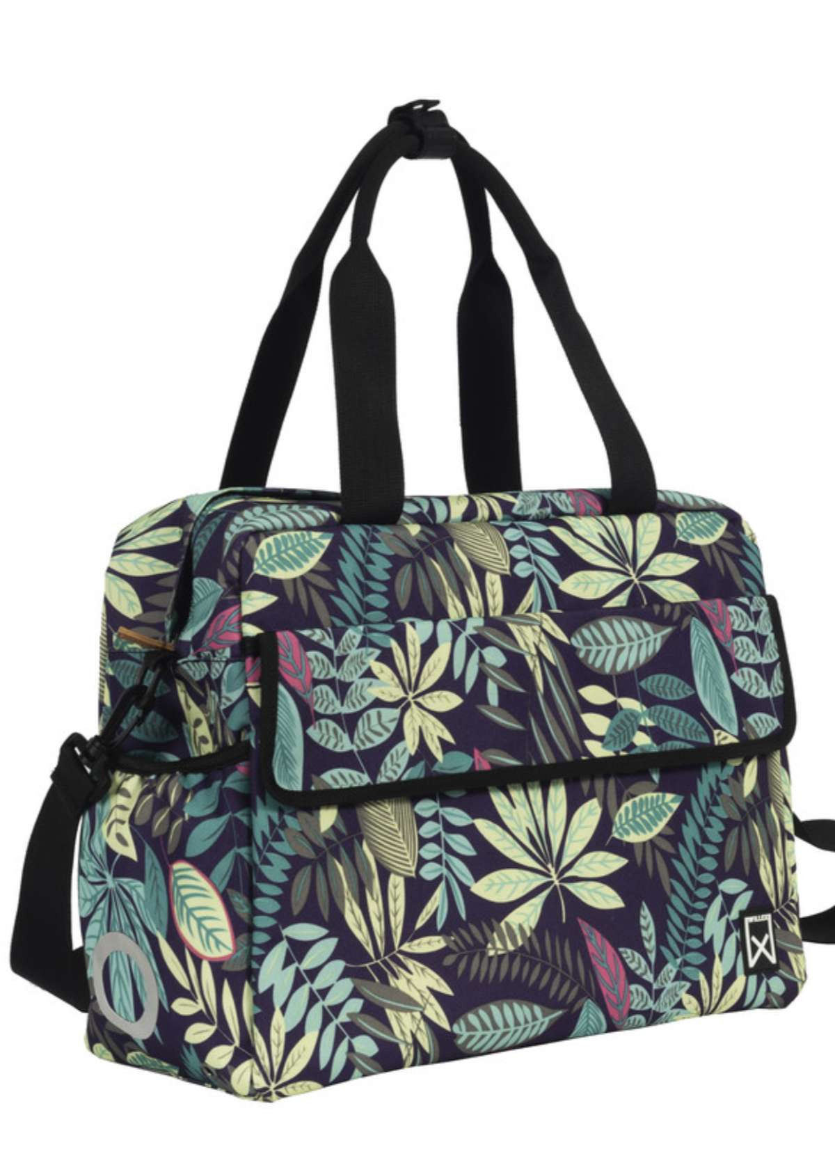 - Three outside pockets, one with a flap