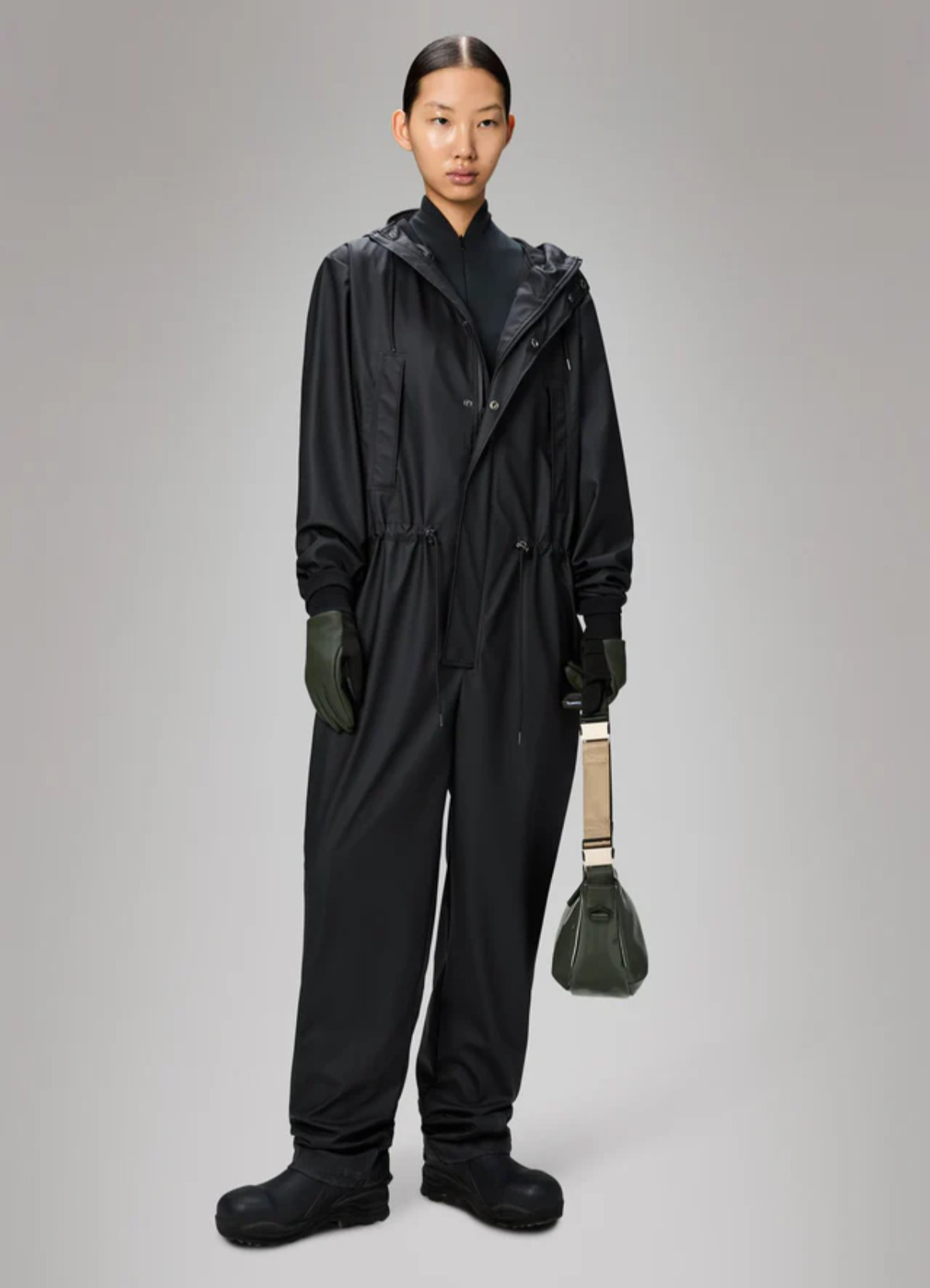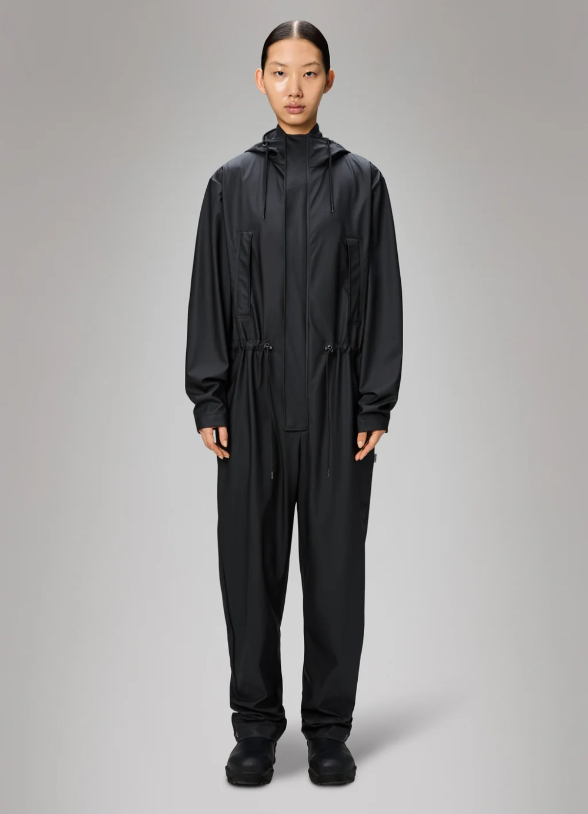 - Rains' signature waterproof PU fabric