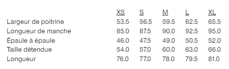 Guide des tailles