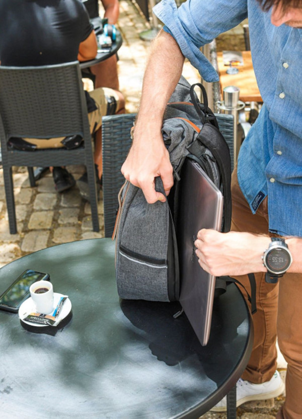 Le système de fixation est très bien pensé et se règle sans outils pour s'adapter du vélo électrique au vieux vélo vintage. L'accès à la poche principale est très pratique pour accéder à ses affaires sans totalement enlever le sac. Le petit +, vous pouvez même garder le sac ouvert par le haut si vous transportez votre baguette préférée !