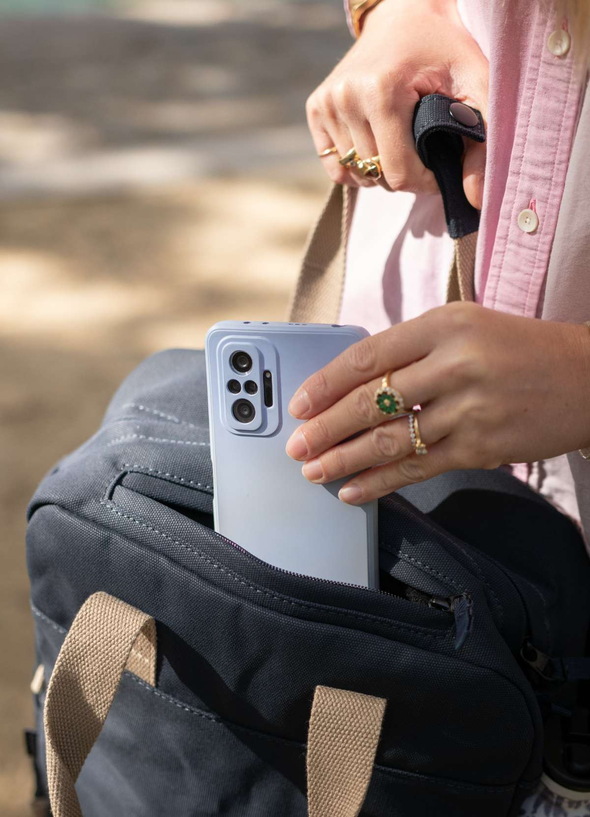 Pochette d'accès rapide doublée de feutre sur le côté du sac