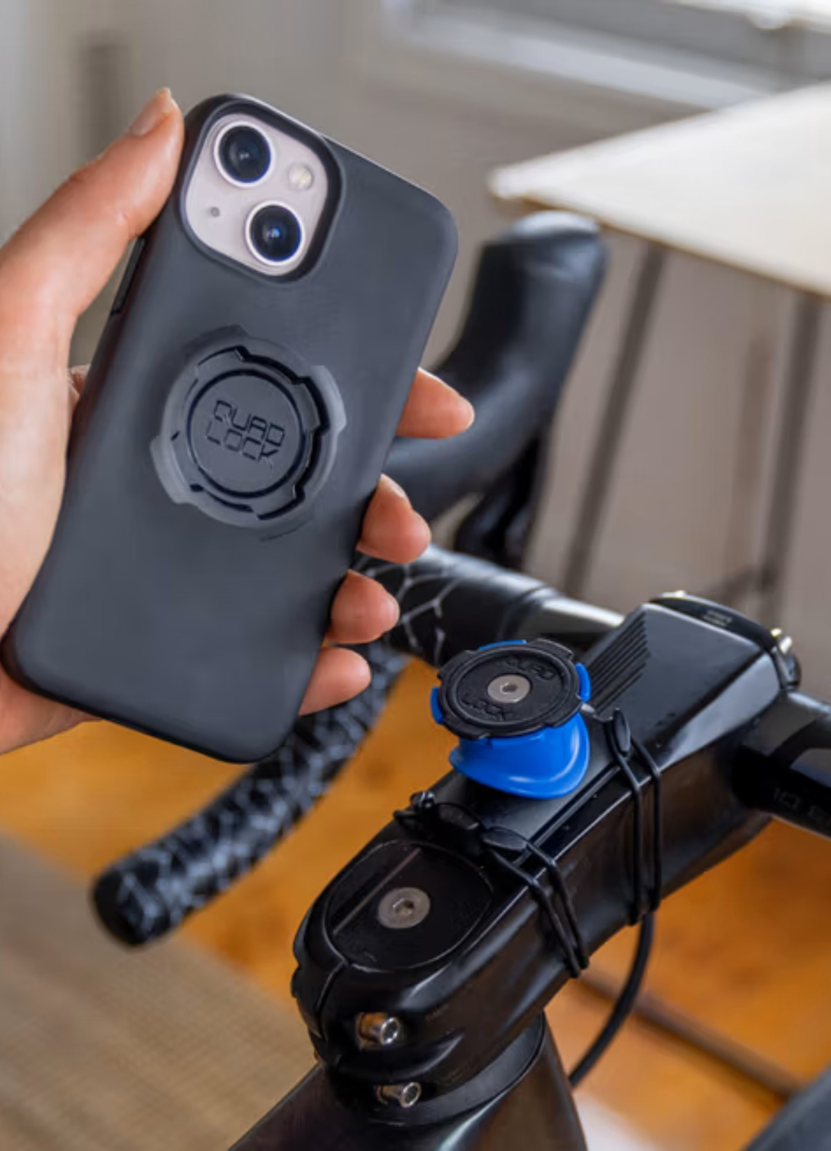 - A coupler avec une coque Quadlock ou le support universel adhésif Quadlock.